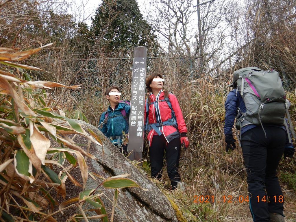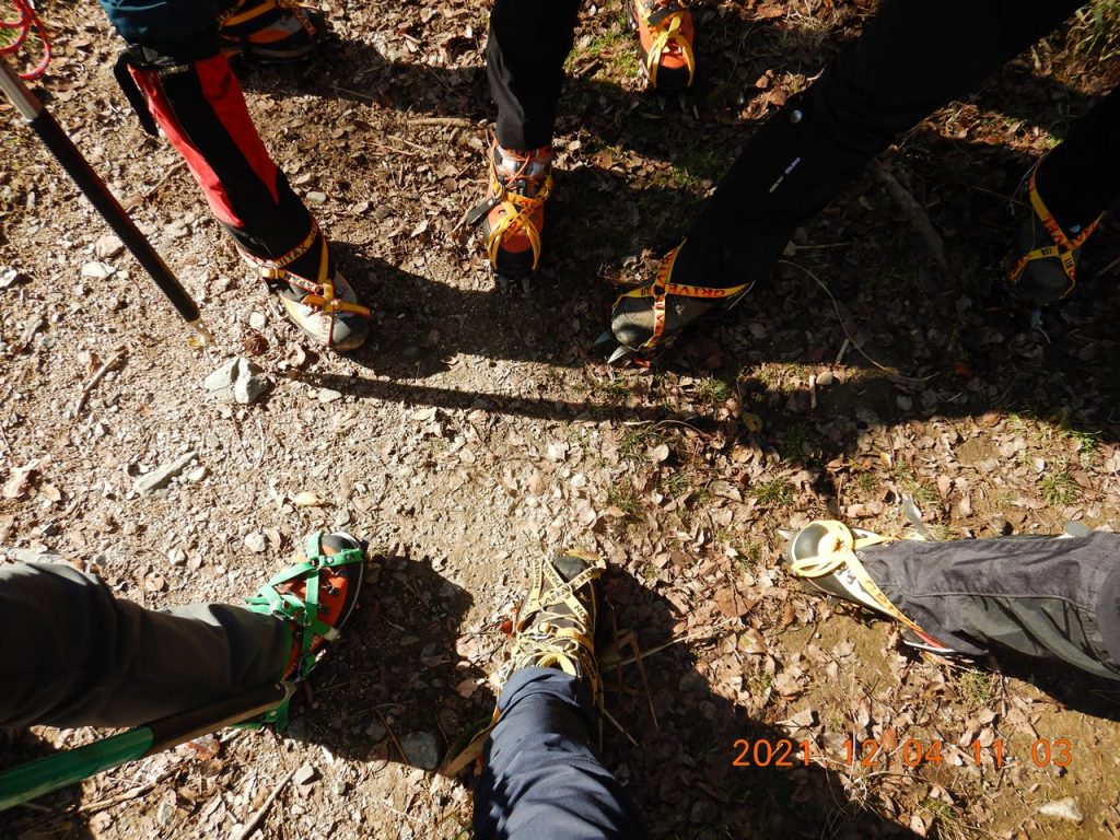 当初、12/4は鈴鹿山系.雨乞岳の予定でしたが出発地点の武兵峠が雪の為通行止め、ならばということで近場の六甲山でアイゼントレーニングを行うことになりました。トレーニング場所は五助尾根、住吉川の五助堰堤からガーデンテラスまで続く標高差約550m傾斜のきつい尾根です。メンバーはリーダーY.I女史、T.I女史、R.O女史、M.I女史、H.K、H.Nの6名です。