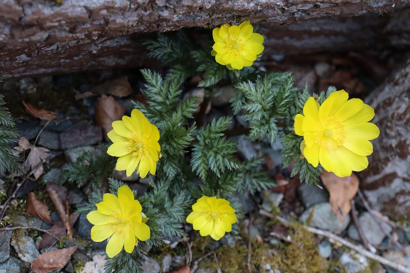 それでも日当たりの良い所には福寿草が数輪だけ咲いています、帰りに寄った龍宮崖には沢山咲いています。