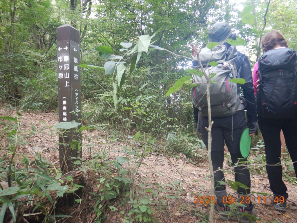 11:38 地蔵谷は真っ直ぐ詰めると天狗道に出ますが今日はアドベンチャールートで黒岩尾根経由で摩耶山に向かいます。